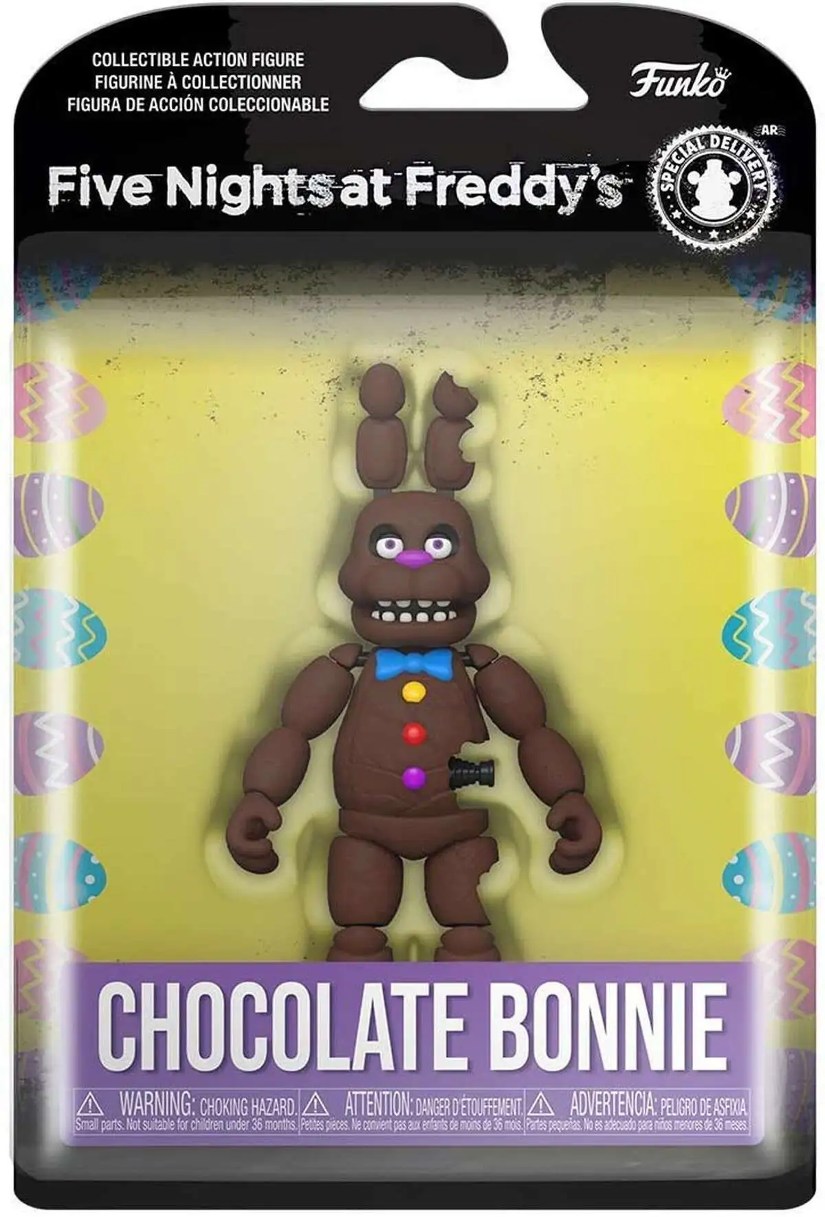 From Five Nights at Freddy’s, Chocolate Bonnie, as a stylized Pop! vinyl from Funko! Figure stands 3 3/4 inches and comes in a window display box. Check out the other Five Nights at Freddy’s figures from Funko! Collect them all!