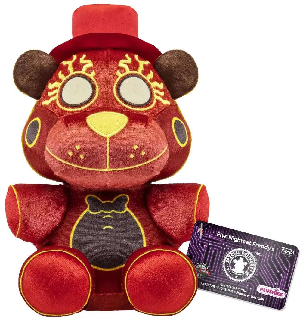 Five Nights at Freddy’s has unleashed a whole new range of terror. Will your FNAF collection survive after the Freddy plush, in orange, steps amidst the other animatronic characters? Collectible plush is approximately 7-inches tall.