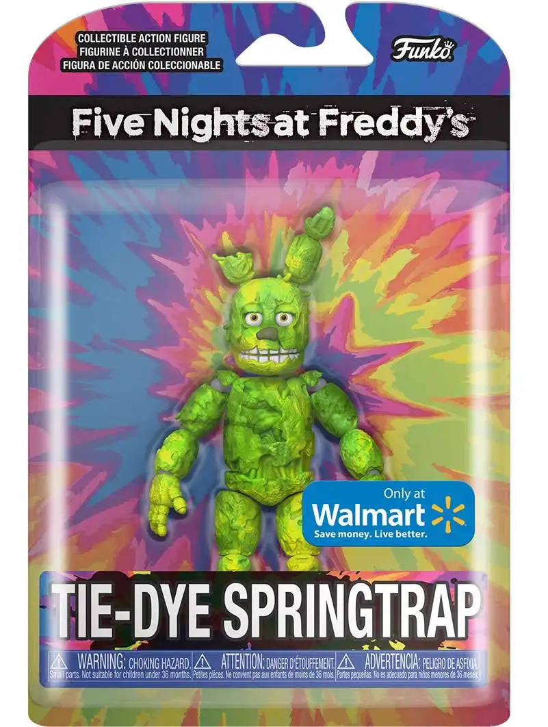 The animatronics at Five Nights at Freddys want to spring into action! Close in on this Walmart exclusive Tie-Dye Springtrap action figure. Capture him before he has a chance to move. Vinyl action figure is approximately 5-inches tall and has multiple points of articulation.