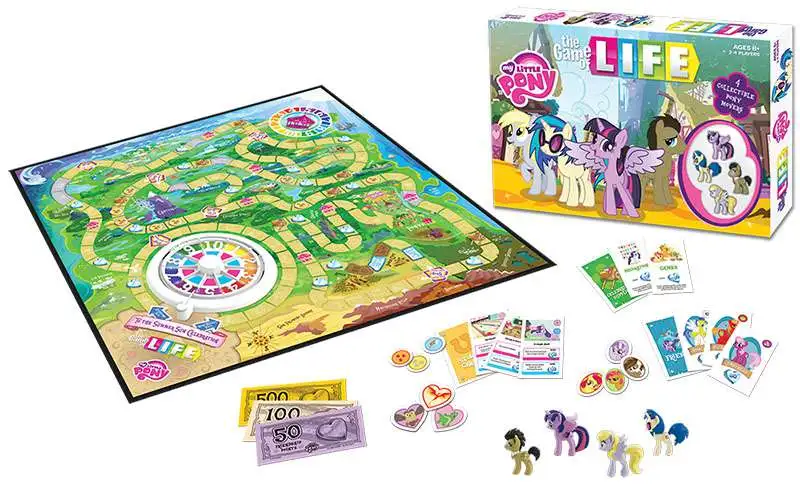 Take Princess Twilight Sparkle, Derpy, Dr. Hooves or DJ Pon3 around the game of life!