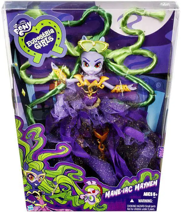 Brace yourself, because youre not ready for the wild and wily ways of this crazy Mane-iac Mayhem doll! Her maniacal ringlets look like Mane-iac Mayhem in the TV series. Shes got an over-the-top outfit and sunglasses, and her boots are off the chain. Get this madcap, one-of-a-kind doll at Comic Con 2014!