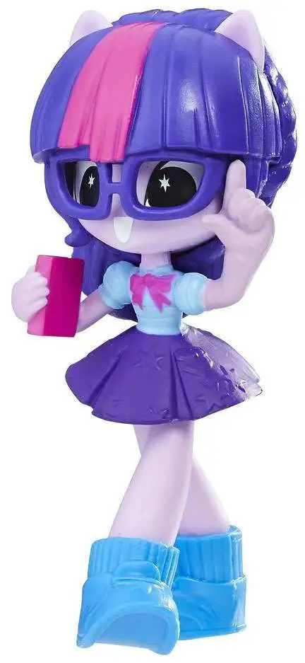A transfer student from Crystal Prep, Twilight Sparkle has a lot to learn about friendship — but at Canterlot High, she’s in the right place! Inspired by entertainment, this 3-inch Twilight Sparkle mini-doll rocks her signature look with her bright purple and pink hair and stylish sculpted outfit. This doll is posed in a fun way, with one hand clutching a book and an excited look on her face! Also look for other My Little Pony Equestria Girls minis. (Each sold separately. Subject to availability.) In the world of the Equestria Girls, the power of friendship is stronger together!