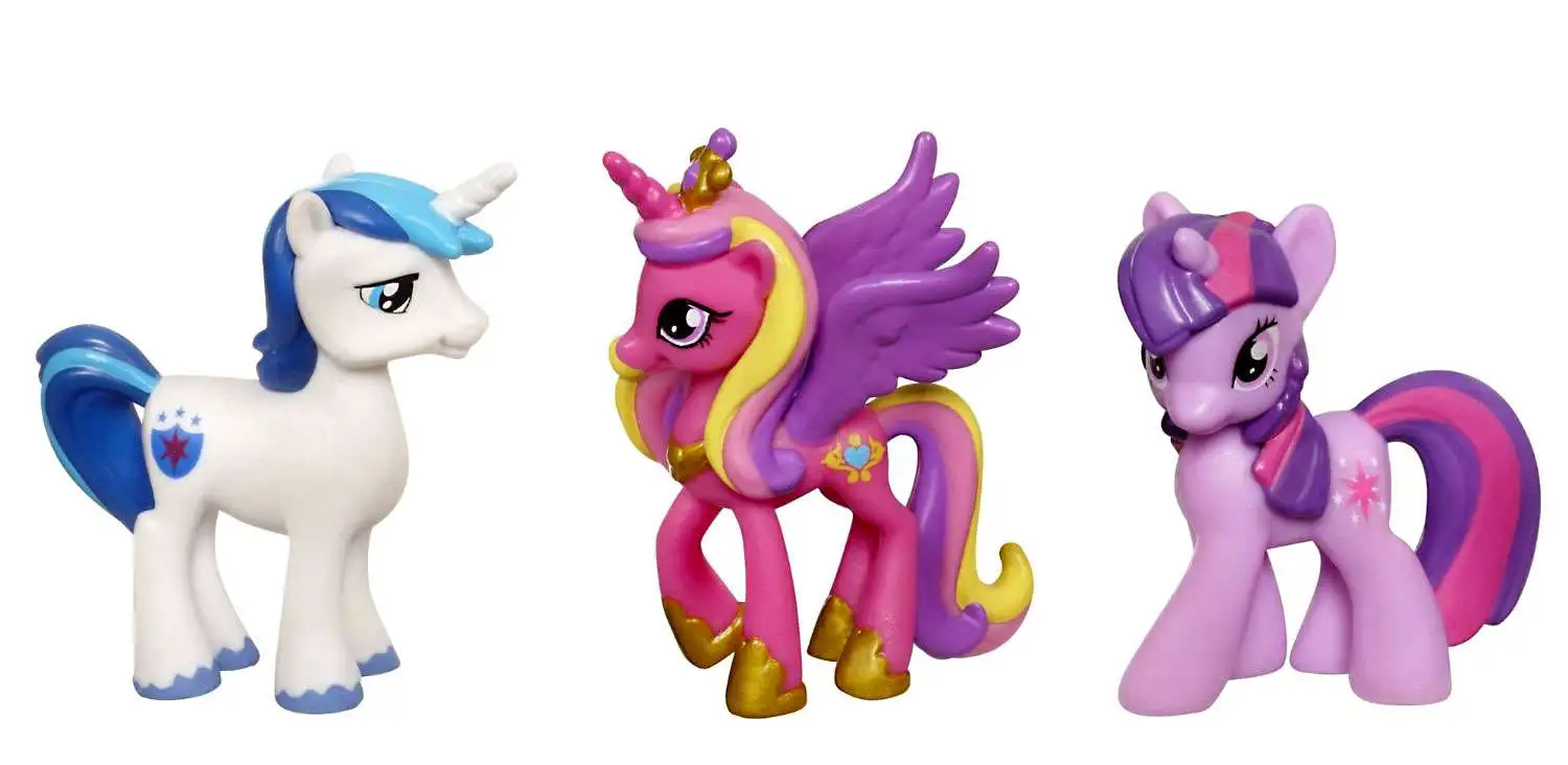 3-pack of pony figures! Includes TWILIGHT SPARKLE, PRINCESS CADANCE and SHINING ARMOR figures.
