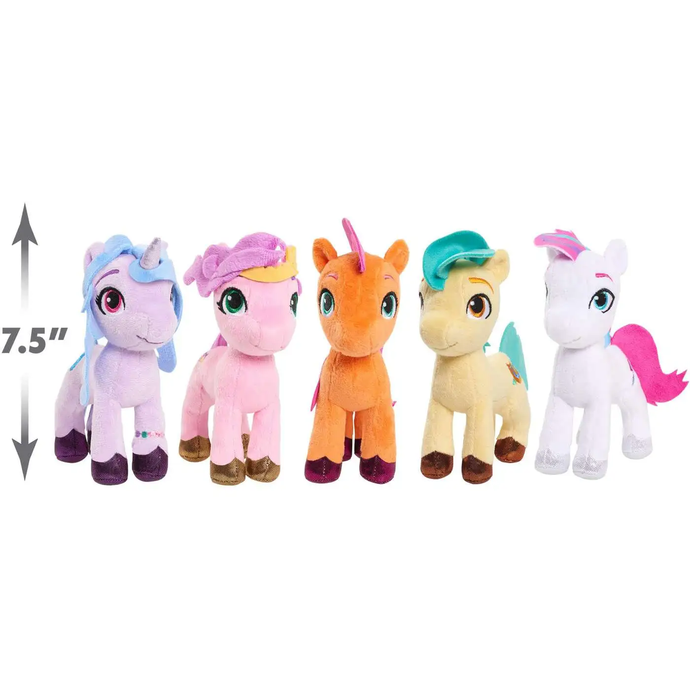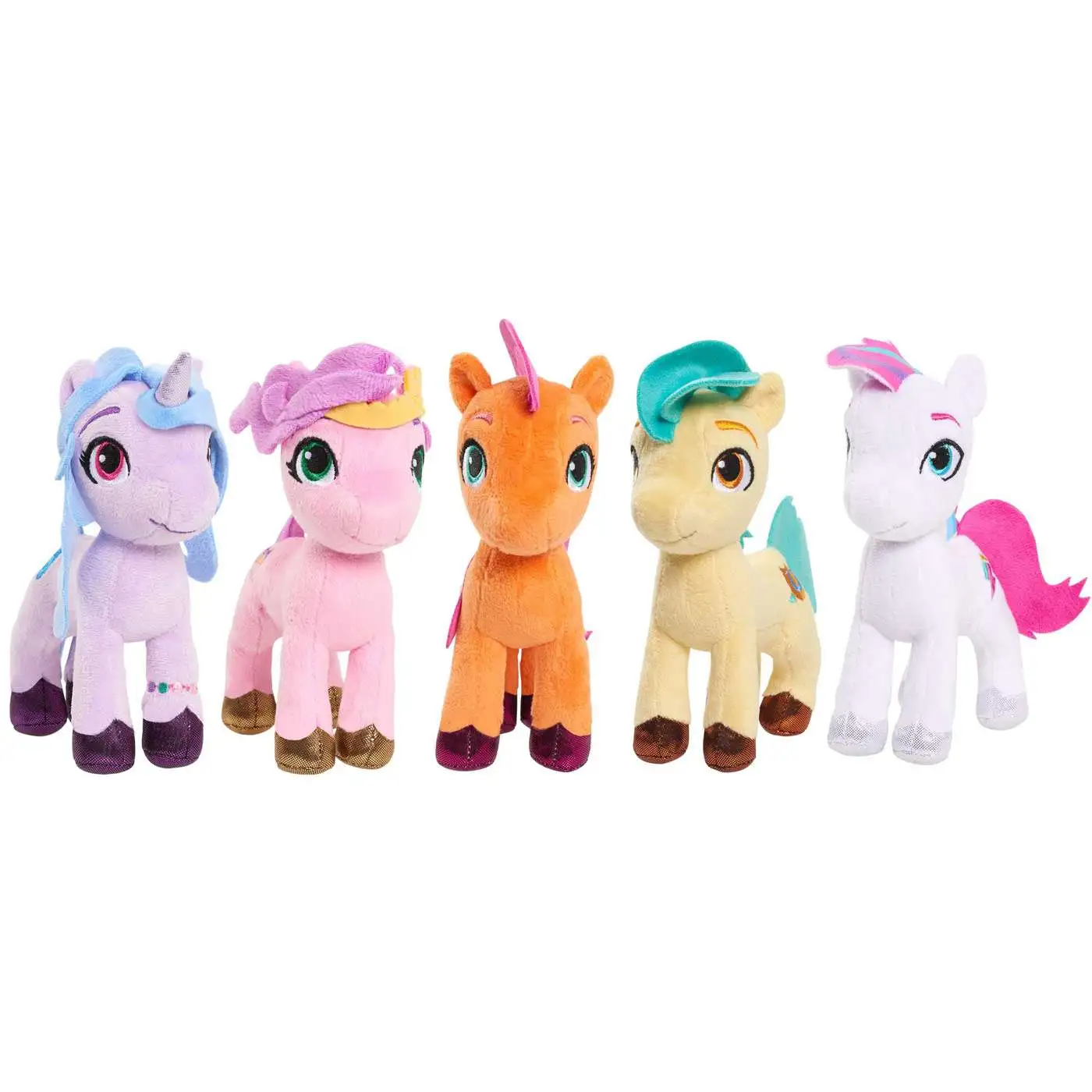 Experience the magical feeling of friendship and fresh adventures with the My Little Pony Small Plush Friendship Set. These cuddly, plush best friends feature vibrant colors made with soft fabrics and embroidered metallic eyes. Each characters looks just like they do in the movie, and even feature an embroidered Cutie Mark! Inspire kids to create #Ponypower adventures with this five-piece set that includes Sunny Starscout, Izzy Moonbow, Hitch Trailblazer, Pipp Petals, and Zipp Storm! Ages 3+