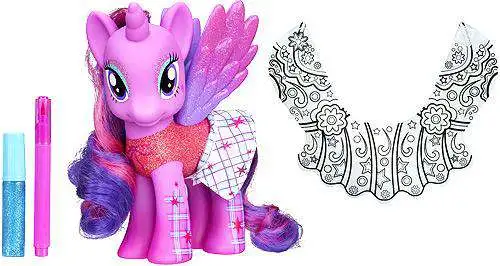 Princess Twilight Sparkle pony figure from the new My little Pony movie, “Through the Mirror”. Princess Twilight Sparkle steps through a magical mirror into a completely new world where some things have changed, but true friendships remain magical. Includes a dress that you can decorate!