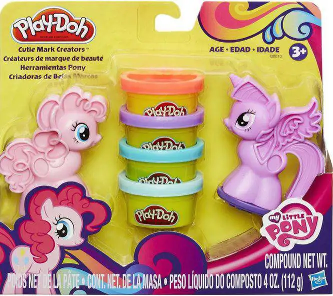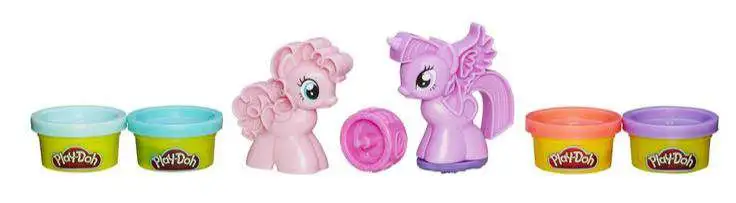 Hey, everypony – get ready for rainbows of fun! Create Cutie Marks and other fun designs with these Twilight Sparkle and Pinkie Pie rolling and stamping tools. Fill in their half-molds for even more colorful creativity. Play-Doh and all related properties are trademarks of Hasbro.