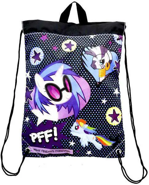 Perfect bag for travelling and work. Bag is made from durable nylon and has a draw string closure. Front of the sling features full coverage Brony artwork which is sure to turn heads. Bags measures: 15.50 x 11.75 .