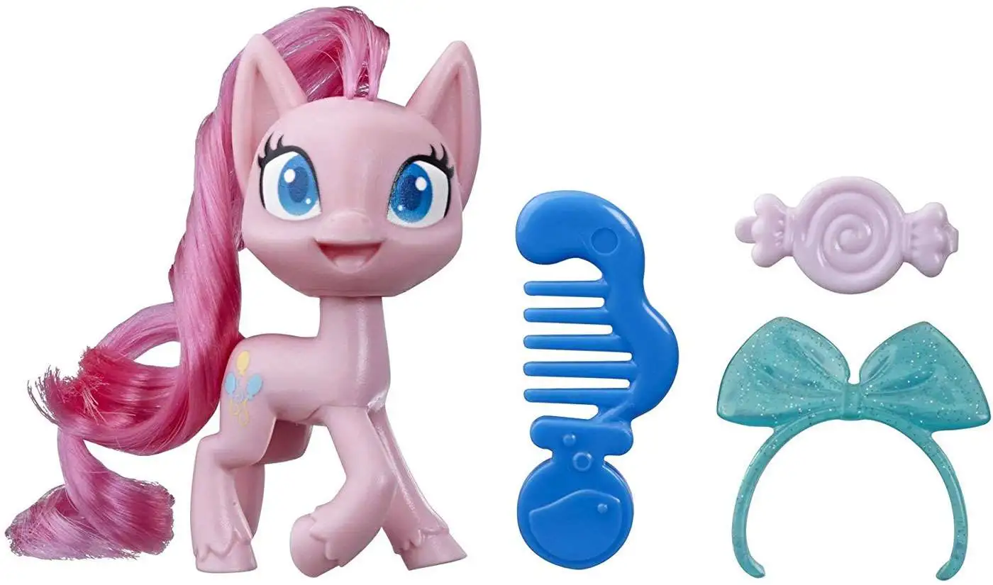 This Pinkie Pie Potion Pony 3-inch figure is a pink pony toy with a pink mane and tail. Figure comes with a comb and 4 surprise hair play accessories. Tear open the potion bottle-themed pack and pour out the accessories for styling her long brushable hair! Pinkie Pie Potion Pony features a reimagined form factor for a fresh and adorable take on the character’s original design in My Little Pony entertainment. Also look for Fluttershy, Twilight Sparkle, Applejack, Trixie Lulamoon, and Potion Nova figures to share accessories and imagine adventures in Equestria! (Each sold separately. Subject to availability.)