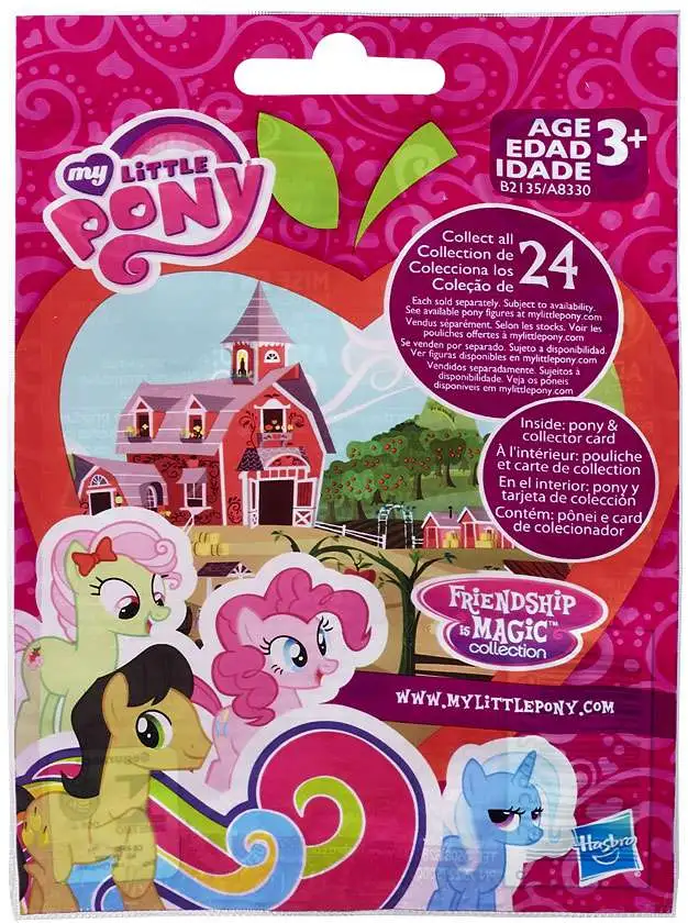 Get a surprise mini-pony with this Surprise Bag! Each bag includes 1 mini-pony and there are 24 for you to add to your collection (each sold separately). Collect them all to complete your pony rainbow! My Little Pony and all related characters are trademarks of Hasbro. Purchasers will randomly receive 1 of 24 ponies.