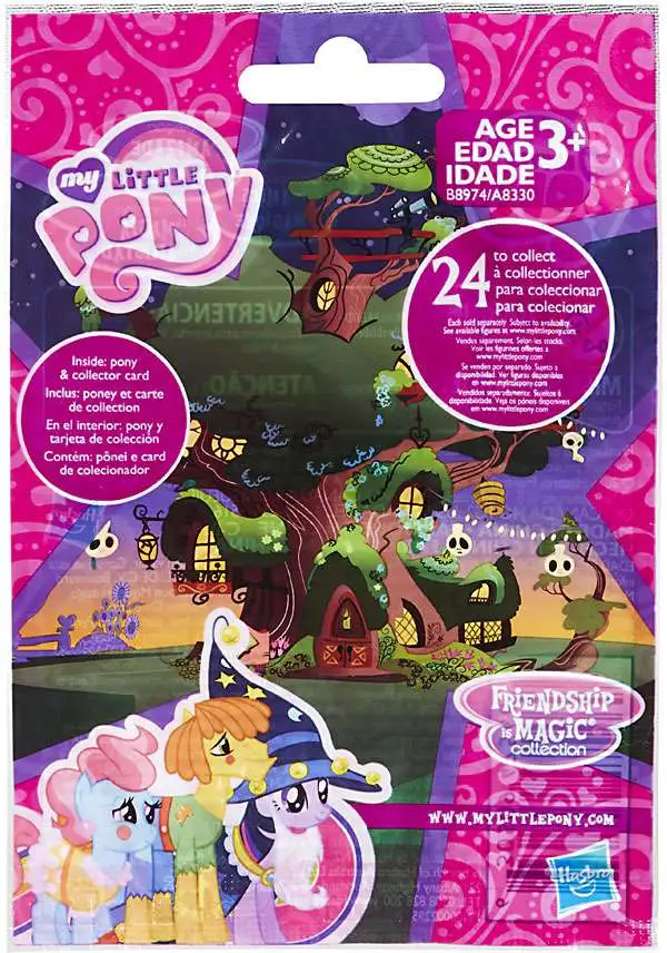 Get a surprise mini-pony with this Surprise Bag! Each bag includes 1 mini-pony and there are 24 for you to add to your collection (each sold separately). Collect them all to complete your pony rainbow! My Little Pony and all related characters are trademarks of Hasbro. Purchasers will randomly receive 1 of 24 ponies.