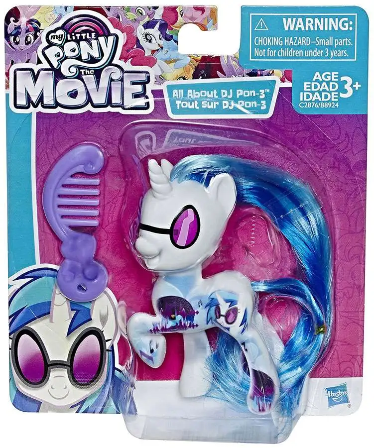 DJ Pon-3 is always ready to play the hottest music in Equestria! Inspired by entertainment, this My Little Pony 3-inch DJ Pon-3 figure has her signature look. Style her hair with the comb accessory and keep this DJ Pon-3 figure looking cool. Also look for Rainbow Dash, Pinkie Pie, Big MacIntosh, Starlight Glimmer and Fluttershy entertainment inspired figures, each with a comb accessory. (Each sold separately. Subject to availability.)