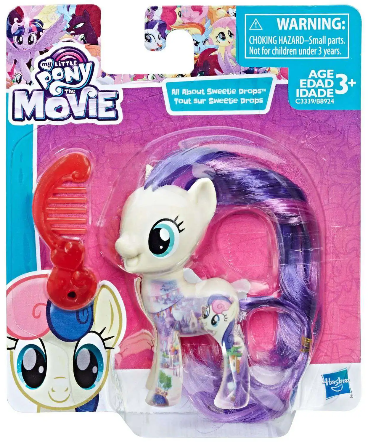 Sweetie Drops knows that sharing sweets makes them sweeter! Inspired by entertainment, this My Little Pony 3 inch Sweetie Drops figure has her signature look. Style her hair with the comb accessory and keep this Sweetie Drops figure looking cool. Also look for Twilight Sparkle, Rarity, Soarin, Applejack, and Lyra Heartstrings entertainment inspired figures, each with a comb accessory. (Each sold separately. Subject to availability.)