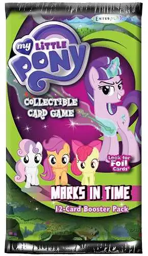 Make your mark on Equestrian history with Marks in Time, the seventh full set in the My Little Pony Collectible Card Game, where players get to relive the great moments throughout the My Little Pony timeline. In this all-new set, players confront Dilemmas, play with (or against) the powerful villain Starlight Glimmer, build their strategy around their favorite Cutie Mark Crusader, and much more!