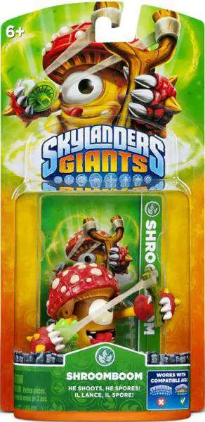 Shroomboom was most unfortunate to have been born in a pizza topping garden belonging to Kaos. Growing up among his fellow fungi, he knew it was only a matter of time before a late night craving would bring about their demise. So Shroomboom took a twig and a strand of spider web and made a slingshot. One by one, he launched all of his friends over the garden fence before flinging himself over to join them. Then he guided them all to the edge of the island and leapt to freedom, using his mushroom cap to catch a friendly breeze. Now as a member of the Skylanders, Shroomboom continues to perform courageous deeds… but he can be hard to find on pizza night.